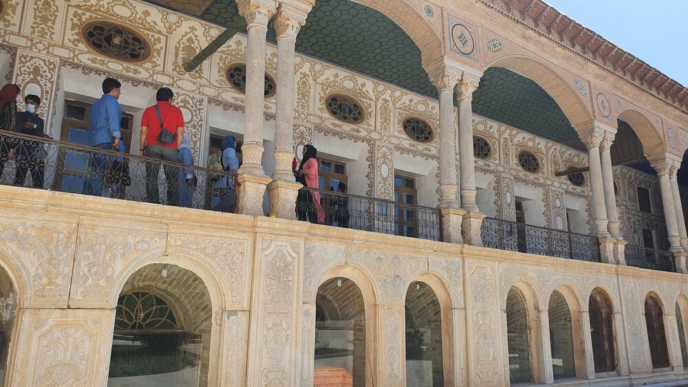 در حیاط این مجموعه تاریخی پنجرههایی وجود دارد که در گذشته حیاط را نورانی میکرده است پنجرههای دو لایه که یک سمت آن به بیرون است و فاصله نیم متری تا اتاقها دارد درون این فاصله فانوسی میگذاشتند. سرتاسر حیاط پر میشد از نور این فانوسهایی که در دیوار و این پنجرهها کار گذاشته شده بود. دود فانوسها نیز از دودکشهای بالای محفظه بیرون میرفت.