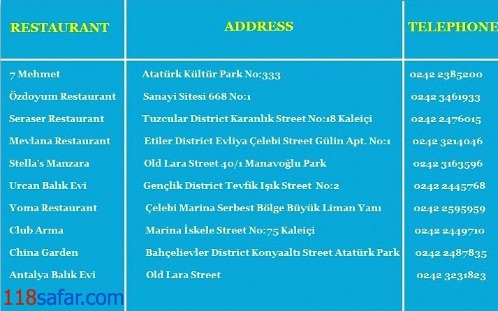 در ادامه فهرست ده رستوران برتر آنتالیا مورد اشاره قرار گرفته است: