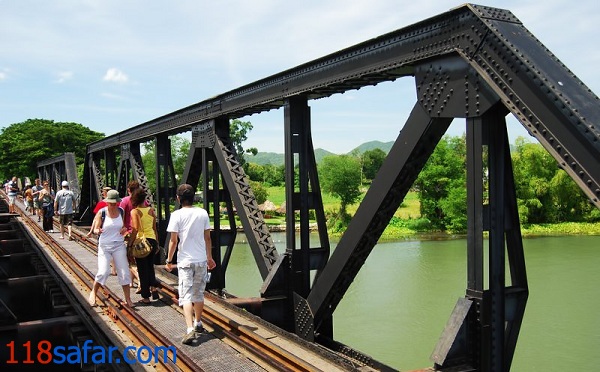 در آنجا سوار قطار شده و از راه آهن بدنام "برمه" عبور کردم. 30 هزار زندانی جنگی از انگلیس، استرالیا و هلند و 100 هزار نفر دیگر از هند، تایلند، سنگاپور و برمه برای احداث این راه آهن در زمان جنگ جهانی کشته شدند. بیش از نیمی از هر دو گروه به دلیل گرسنگی، بیماری های مناطق استوایی، شرایط سخت کار و بدرفتاری ارتش ژاپن جان خود را از دست دادند. قطار از روی پل عبور نکرد زیرا اکنون به مسیری برای عابران پیاده مبدل شده است. پس از پیاده شدن از قطار و هنگام عبور از پل با سوراخ های بزرگی در کناره ها مواجه شدم.